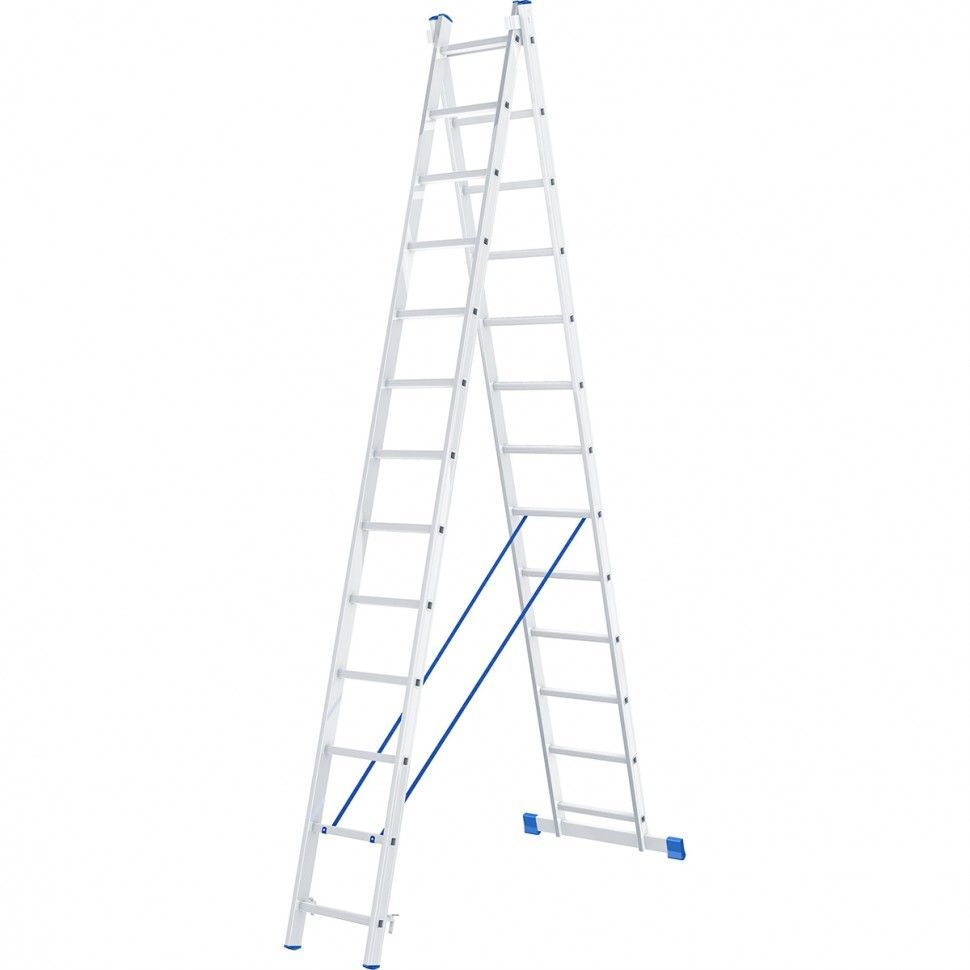Читать все статьиЛестница, 2 х 13 ступеней, алюминиевая, двухсекционная, Россия, Сибртех