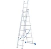 Лестница, 3 х 8 ступеней, алюминиевая, трехсекционная, Россия, Сибртех
